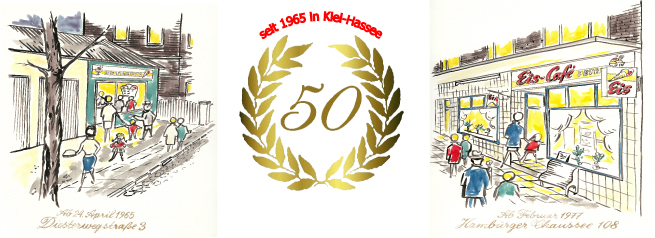 Im Jahr 1965 gab es erst ganz wenige Geschäfte, die sich auf Eis spezialisiert hatten. So feierte am 24. April 1965 unsere Eisdiele ihre Eröffnung in der Diesterwegstraße 3 im Stadtteil Kiel-Hassee.